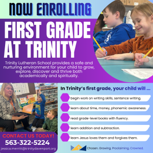 Trinity is now enrolling for all grades for the 2026-27 school year. Check out all the exciting things happening in first grade. Come check us